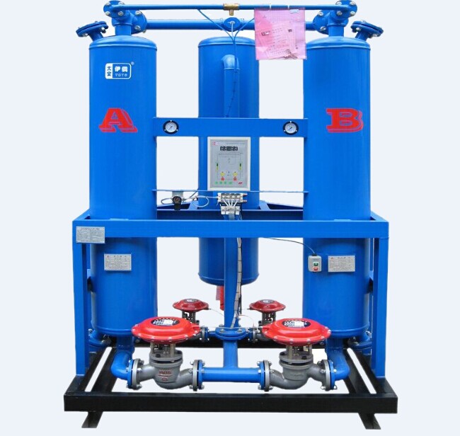 无热再生吸附式干燥机是根据变压原理对压缩空气进行干燥的一种设备,加压状态下吸 附压缩空气中的水份,使压缩空气得到干燥,减压时用一部份干燥压缩空气进行吹扫吸 附剂,使吸附剂得以再生,两搭相互交替,循环使用从而得到干燥的压缩空气,根据压 缩空气压力露点的不同, 选择不同的吸附剂,常用吸附剂有活性氧化铝,分子筛。