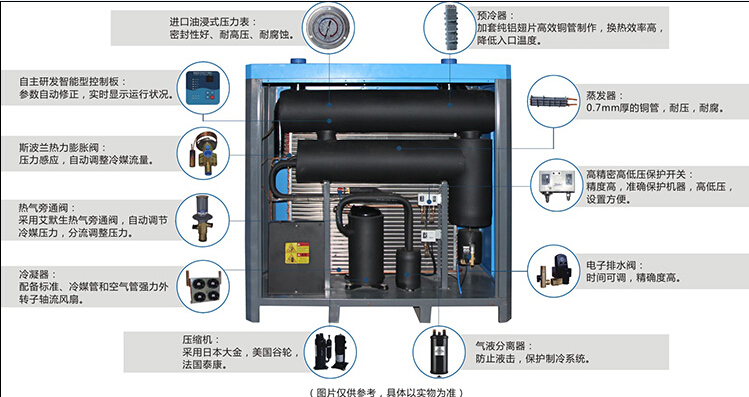 出,从而使压缩空气得到干燥。风冷式高温型冷冻式干燥机的制冷散热装置是风冷式冷