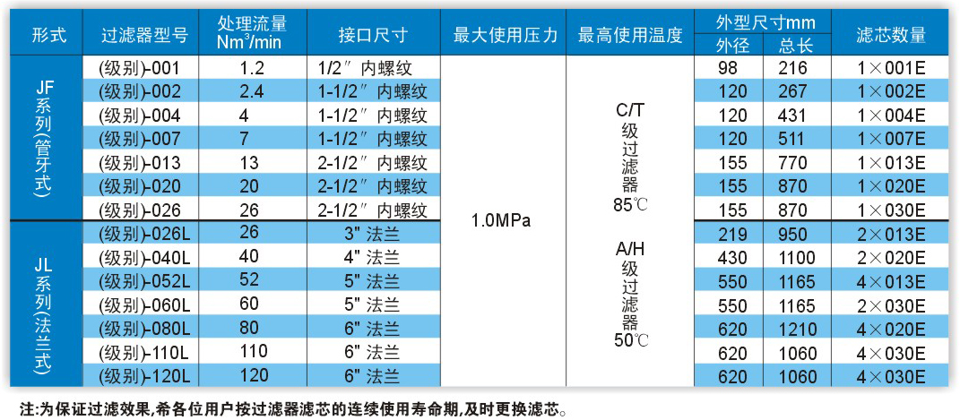 可滤除小到0.01微米的液体及固态颗粒,达到最低残留油份含量仅仅只有0.001ppm。